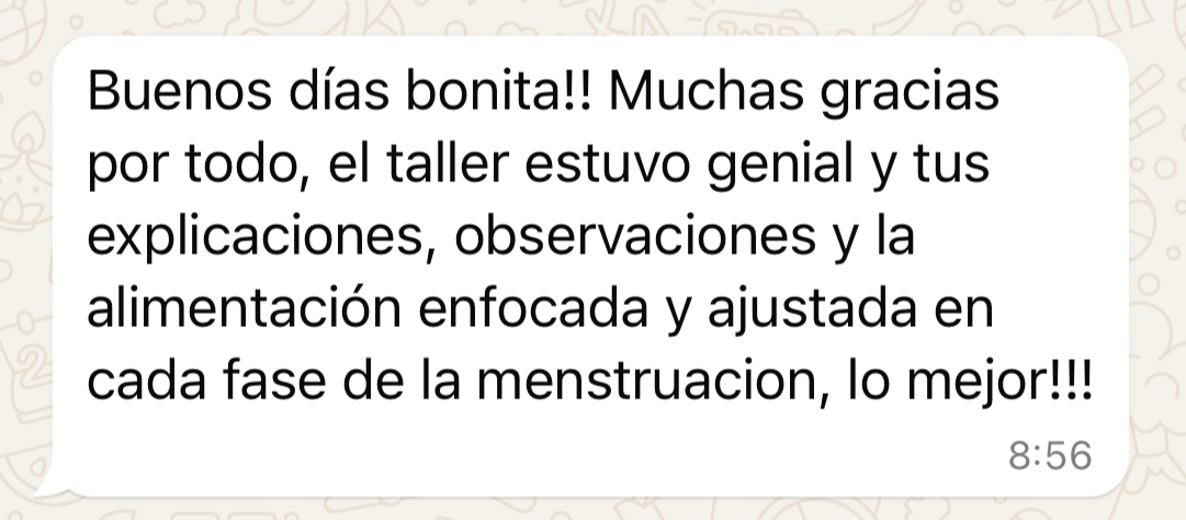 Tendrás acceso a masterclasses grabadas sobre temas clave como regulación hormonal, batchcooking, hambre emocional o autocuidado cíclico. Además, te compartiré recursos descargables, guías prácticas y ejercicios para reforzar tu proceso entre sesiones.